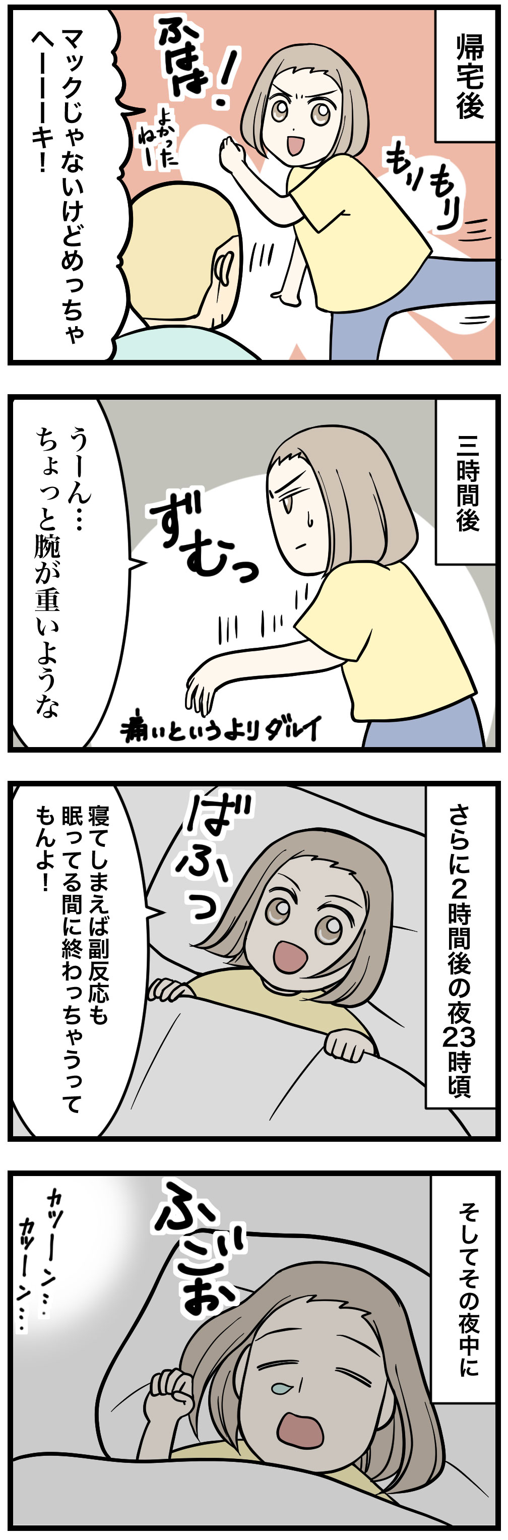 経験者の人達の話だと副反応は数時間後って聞いてたので