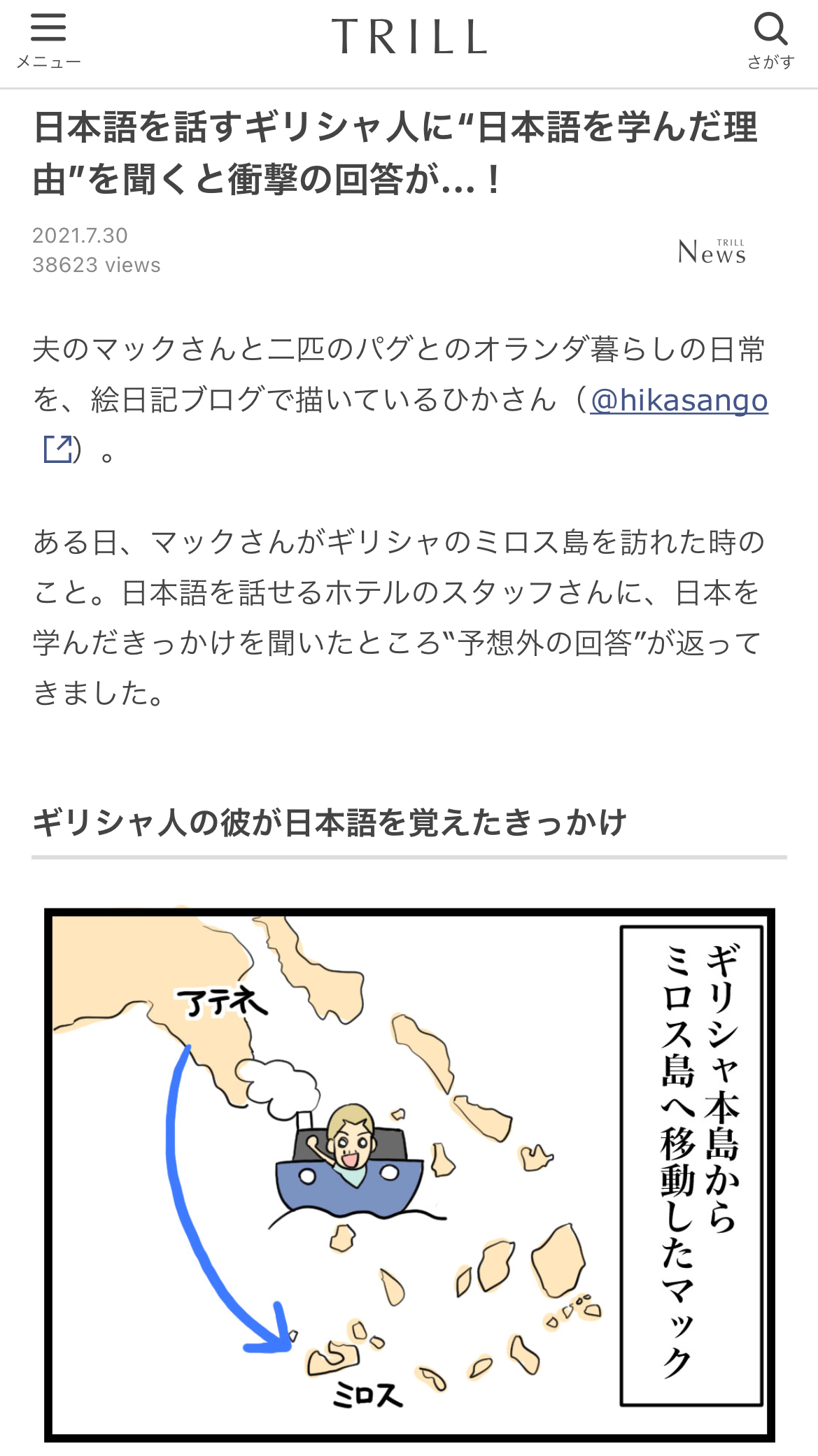 「ギリシャ人の彼が日本語を覚えたきっかけ」漫画を紹介して頂きました!