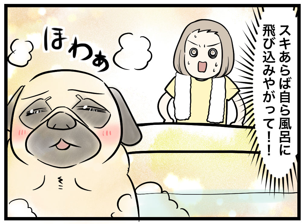 温かいお湯につかるのが大好きでドア閉め忘れると飛び込まれる笑