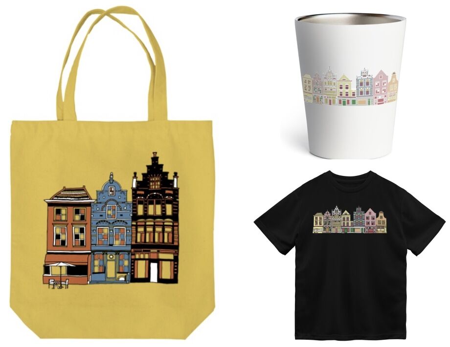 デザインごとに他にもさまざまなTシャツやトートバッグがあります