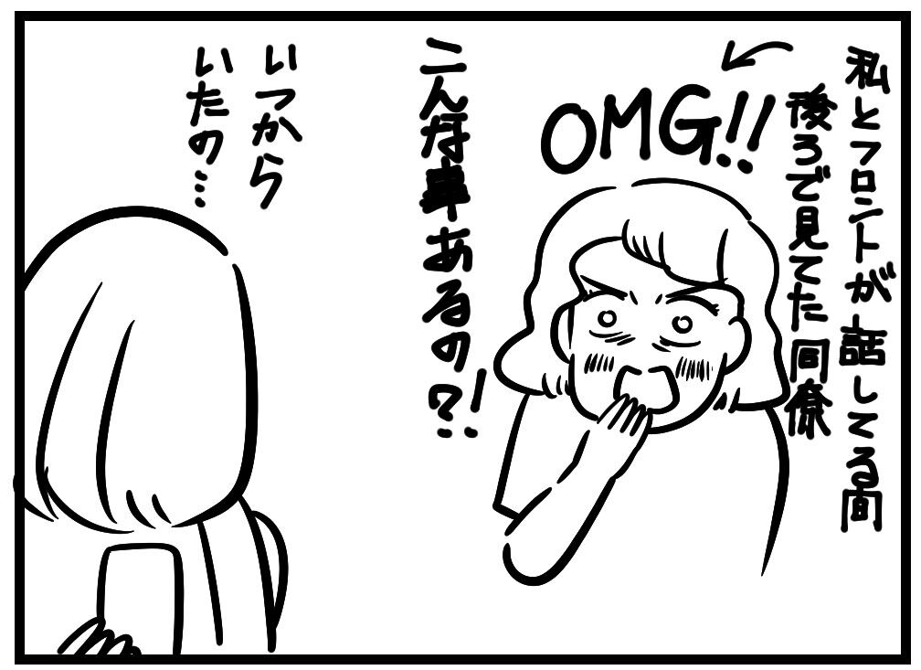 仕事の同僚が、同じホテル利用だったらしく後ろで聞いてたらしい。