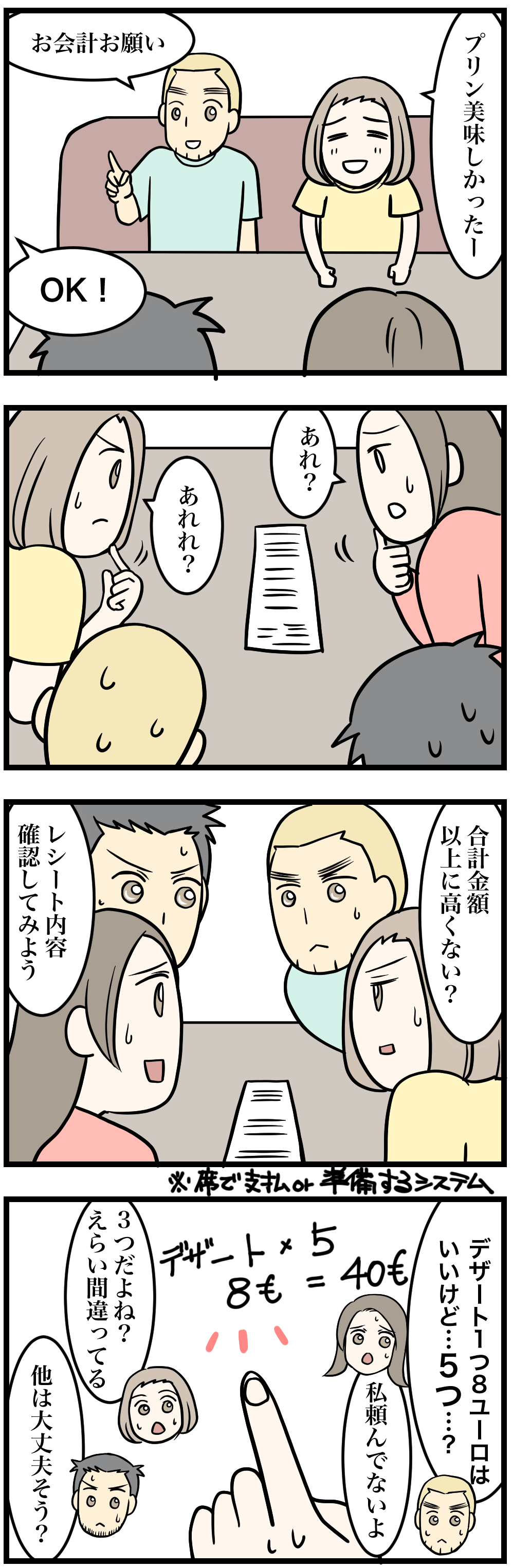 4人とかだと注文も多くなるからレシートも長くなるし、項目もたくさん。