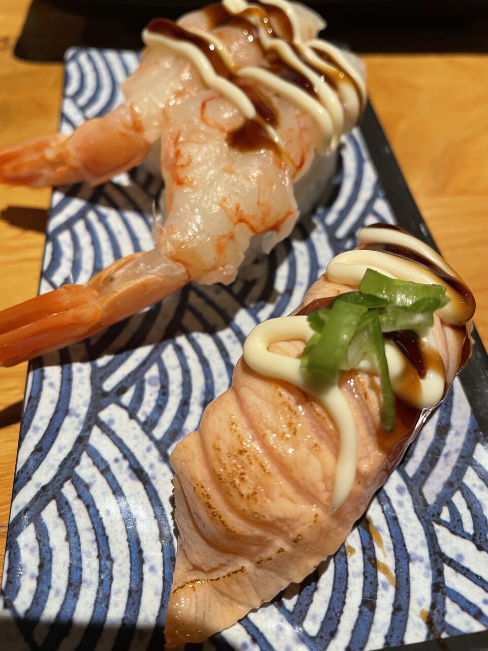 炙りサーモンとボタンエビらしき。