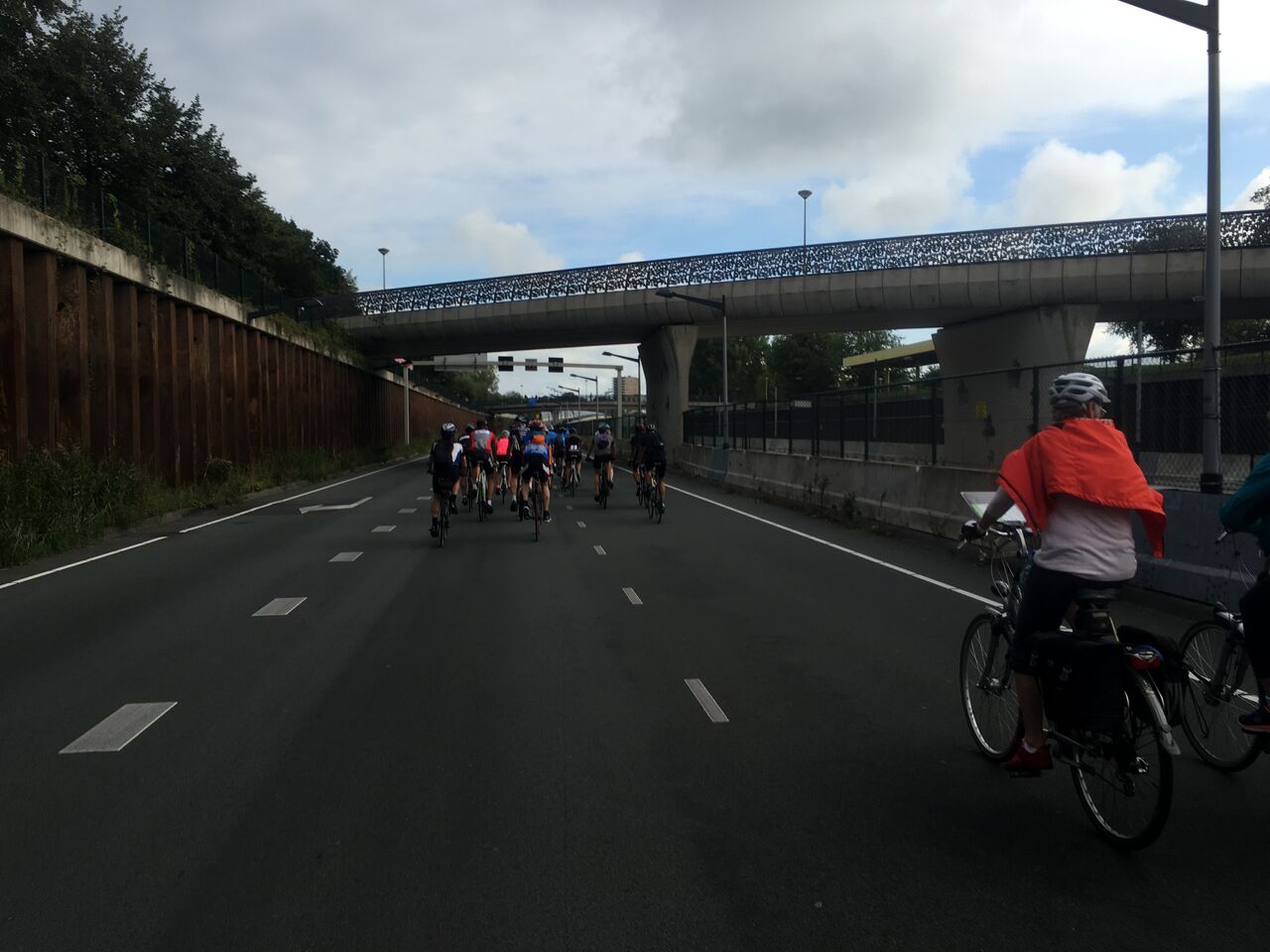 車道をこんな風に自転車だけで走れることはこの大会だけなので