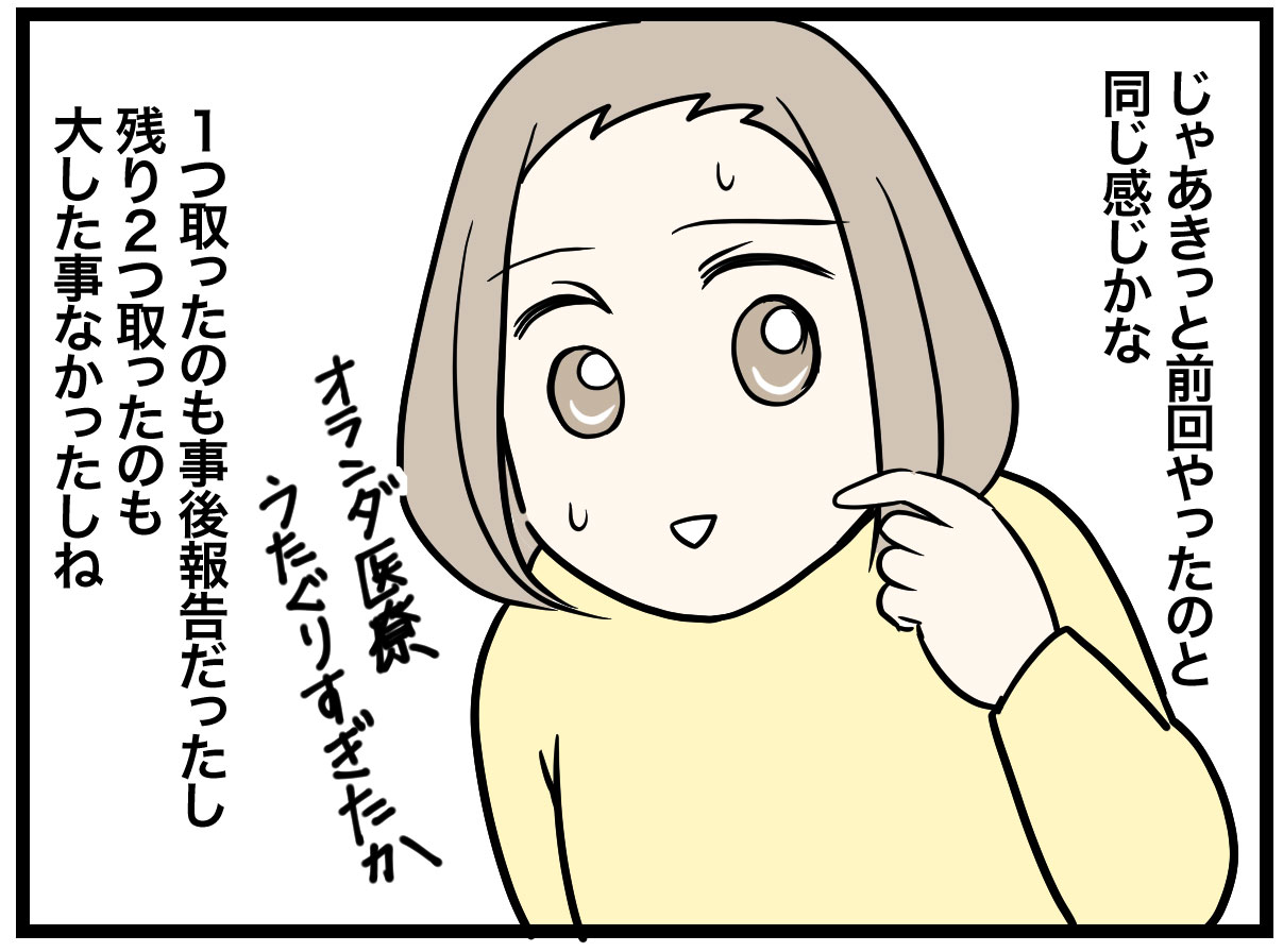 痛みもなく、処置後の出血もほとんどなかったっていう経験が余計