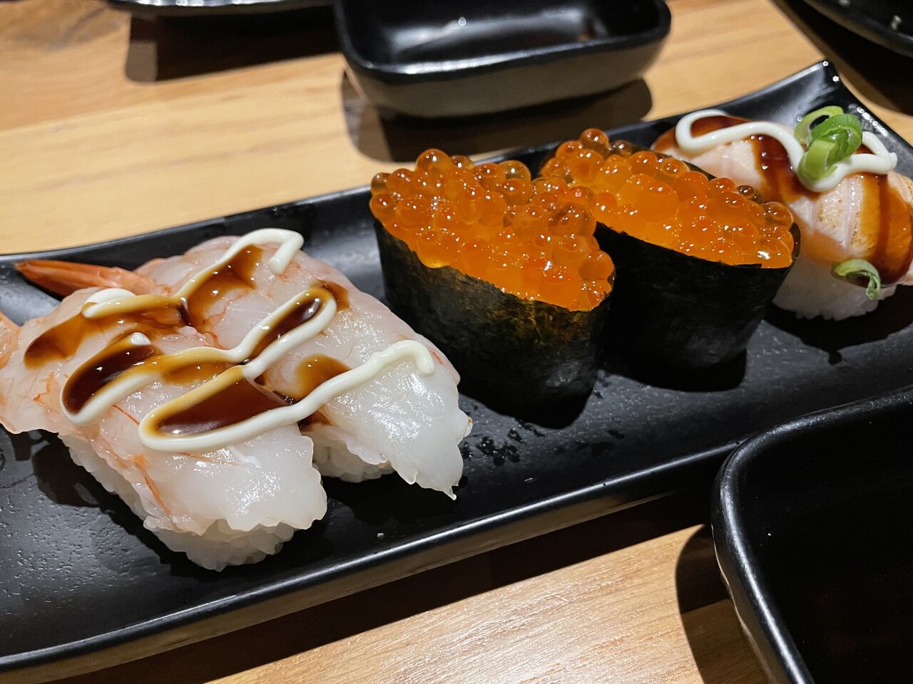 大好き三連コンボ(エビ、いくら、サーモン炙り)