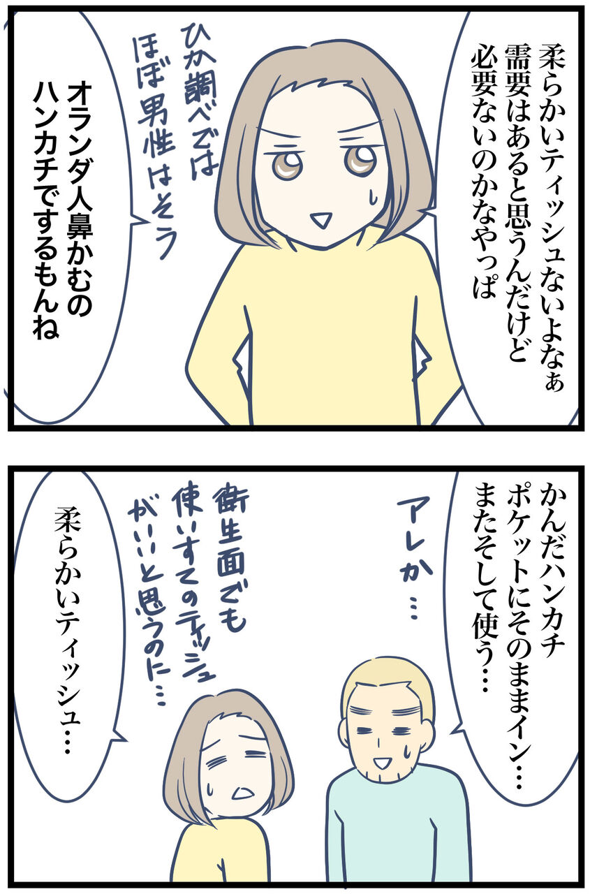 けっこうオランダに来た時、そのハンカチ使っては衝撃映像だったんだけど