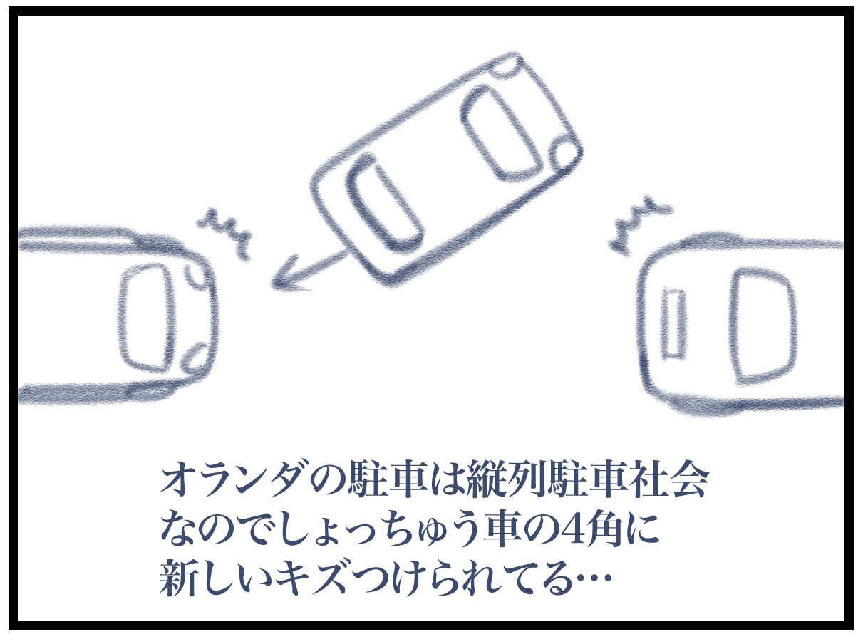 日本にいた頃は車にこだわって、ワックスピカピカで大事に乗ってたので小さいキズとか本当に嫌だった。でもオランダにいるともう4角のキズは仕方ないって思ってきてしまう。