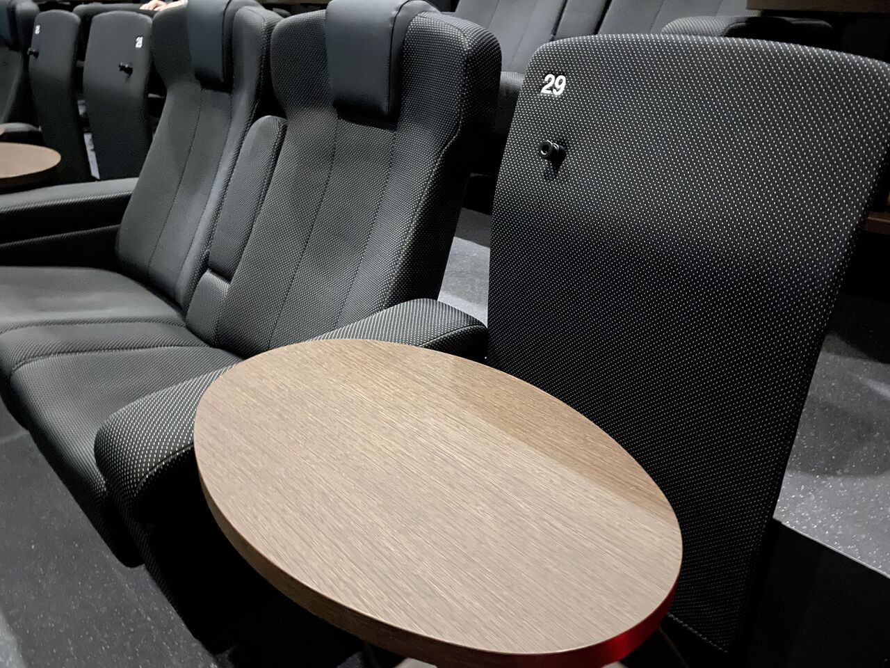 ポップコーンとジュース置き場に、お隣の人とひじ掛け取り合いにならないやん。