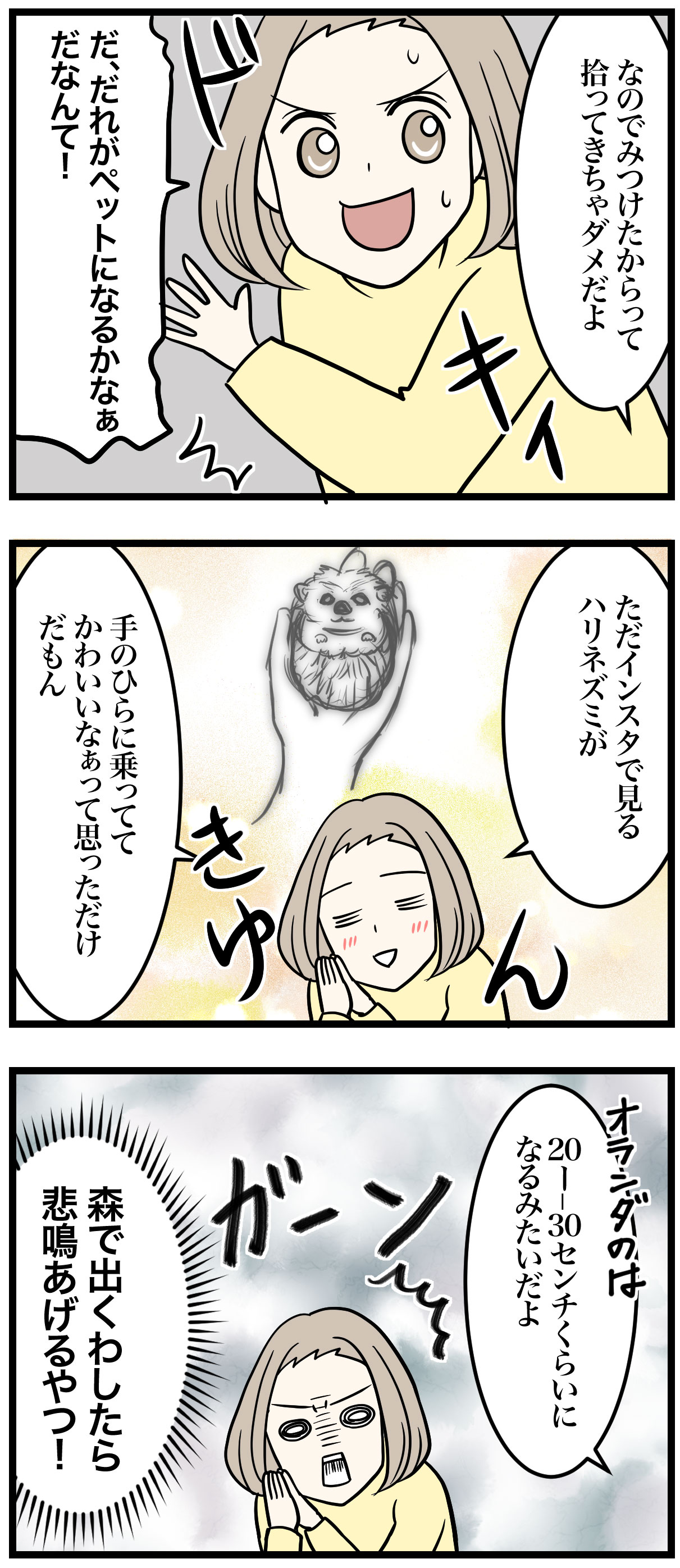 30センチ級はさすがに悲鳴あげそうだけど、いつか森ででくわさないかぁハリネズミ。わくわく。
