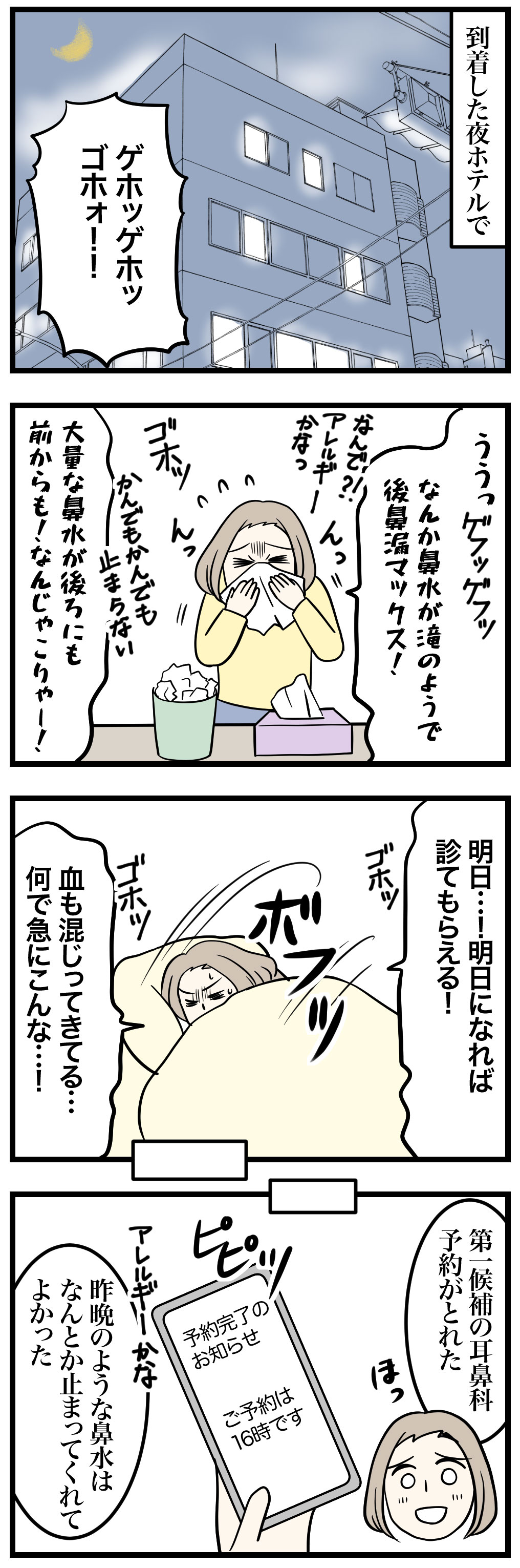 そのうち血が混じるようになってきたから、不安になったけど「明日には耳鼻科にいける!」という思いが安心させてくれたし心強かった。