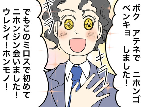 ギリシャ人の彼が日本語を覚えたきっかけ ブログ閲覧ありがとうございます!夫婦とパグ犬2匹とのオランダでの日常を絵日記にしています。自己紹介はこちらです。マックのギリシャでのお話。 ここから本文にこにこした男性からは想像できなかったまさかのプロレス。だいたい「日本人」ってわかると「アニメ」の話題し ... 2020年10月05日 続きを読む