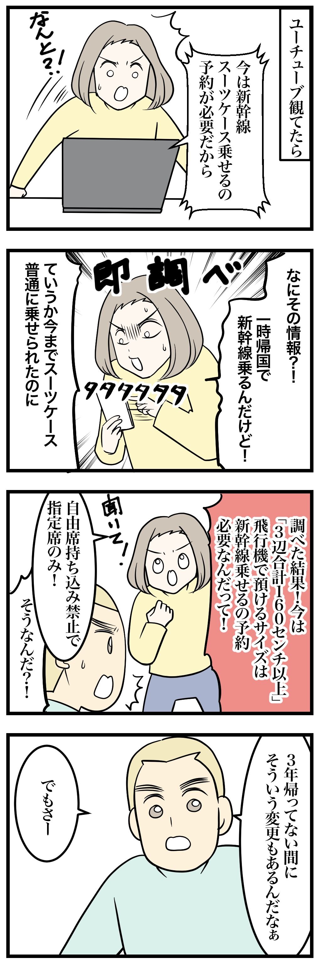 今は飛行機で預けるサイズのスーツケース、自由席に持ち込めなくなったんですね。