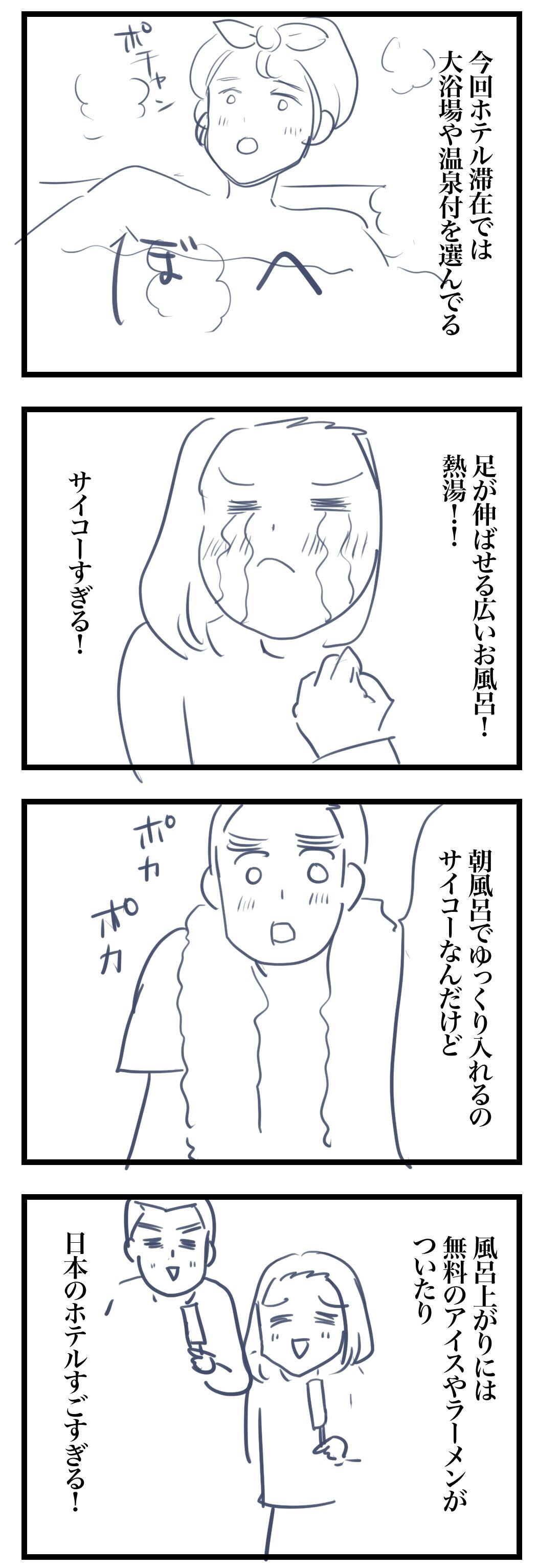 やっぱり足を伸ばせて、熱いお湯のお風呂はいいですねー。