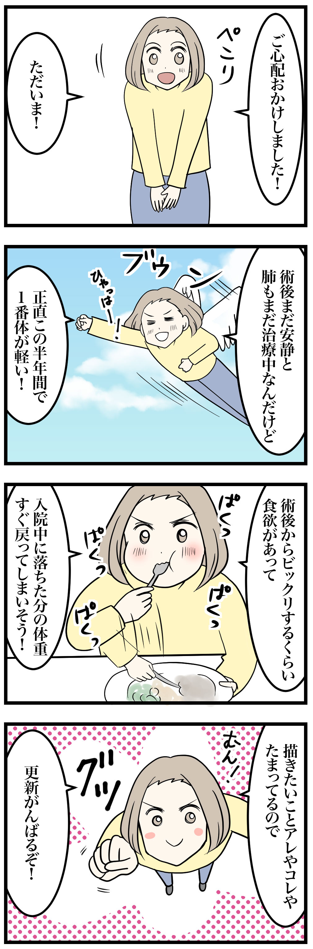 今は座ってても疲れてた時と違い、漫画も集中して描けるようになってきたので