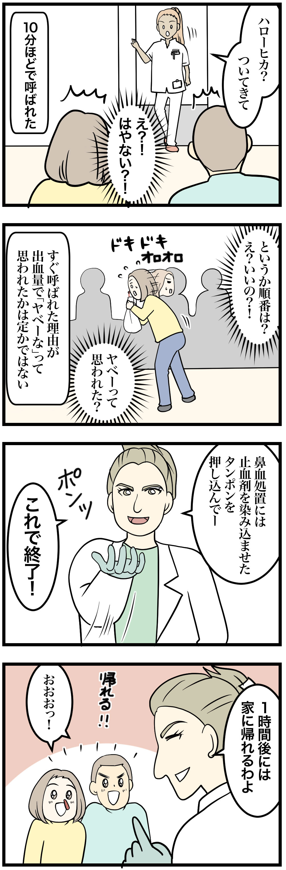 待ち時間もほとんどなかったし、鼻血処置も簡単そう!!
