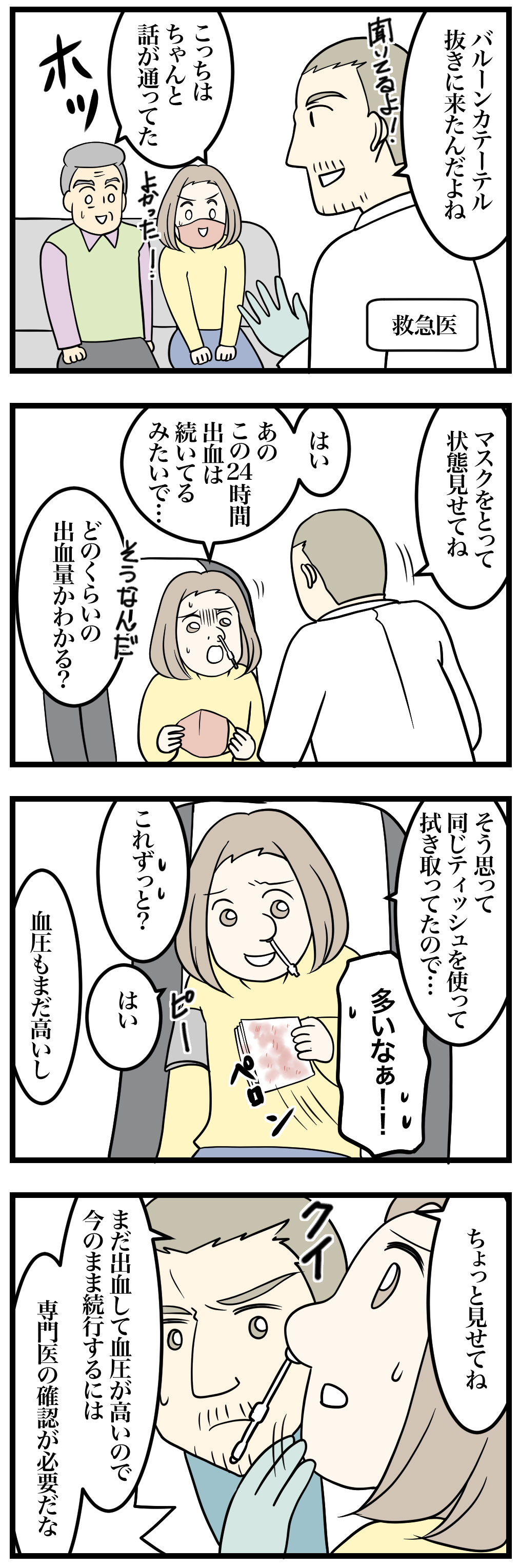 この話は鼻炎で鼻血が珍しくなかったのだけど出血がまったく止まる気配がなくて救急へ行った時の話です。(漫画には出血表現があるので苦手な方はご注意ください)