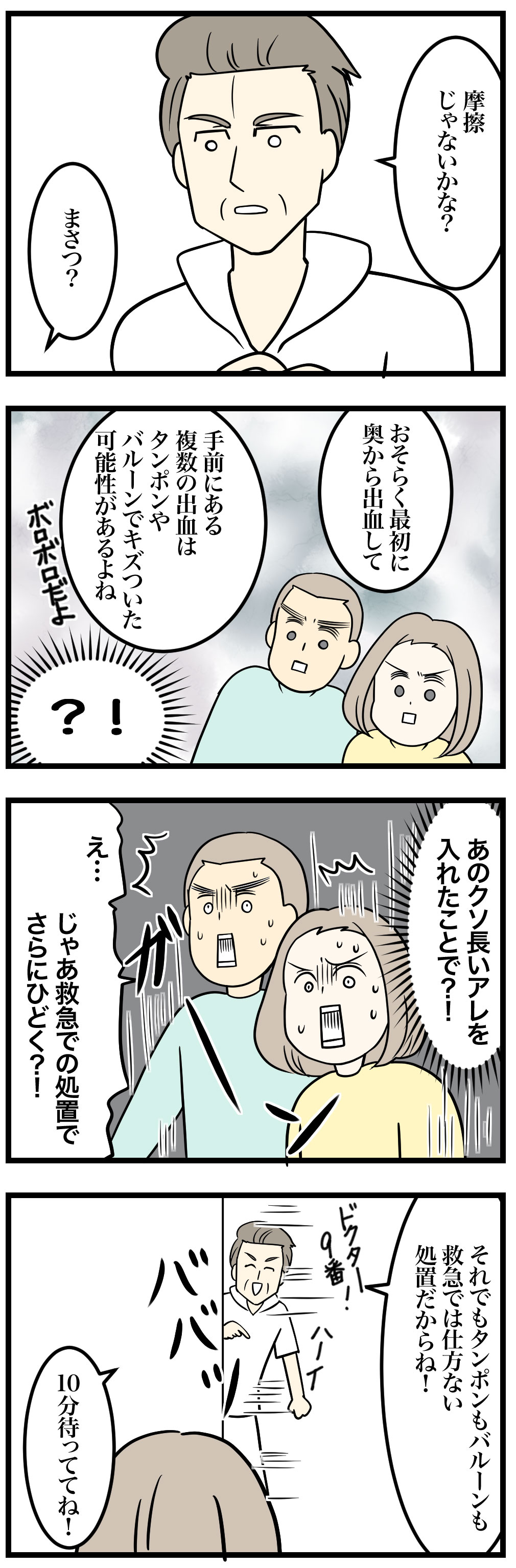 そしてその後救急で、タンポン押し込んだり、バルーン押し込んだり。