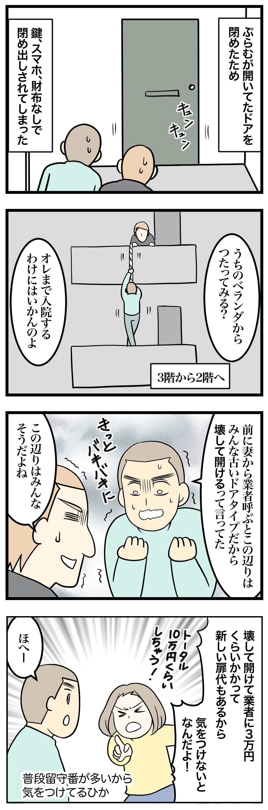 なのでご近所さんたちも身内だったり、友人だったりに合鍵を預けて最悪な「ドアを壊して入る」を避けているのです。