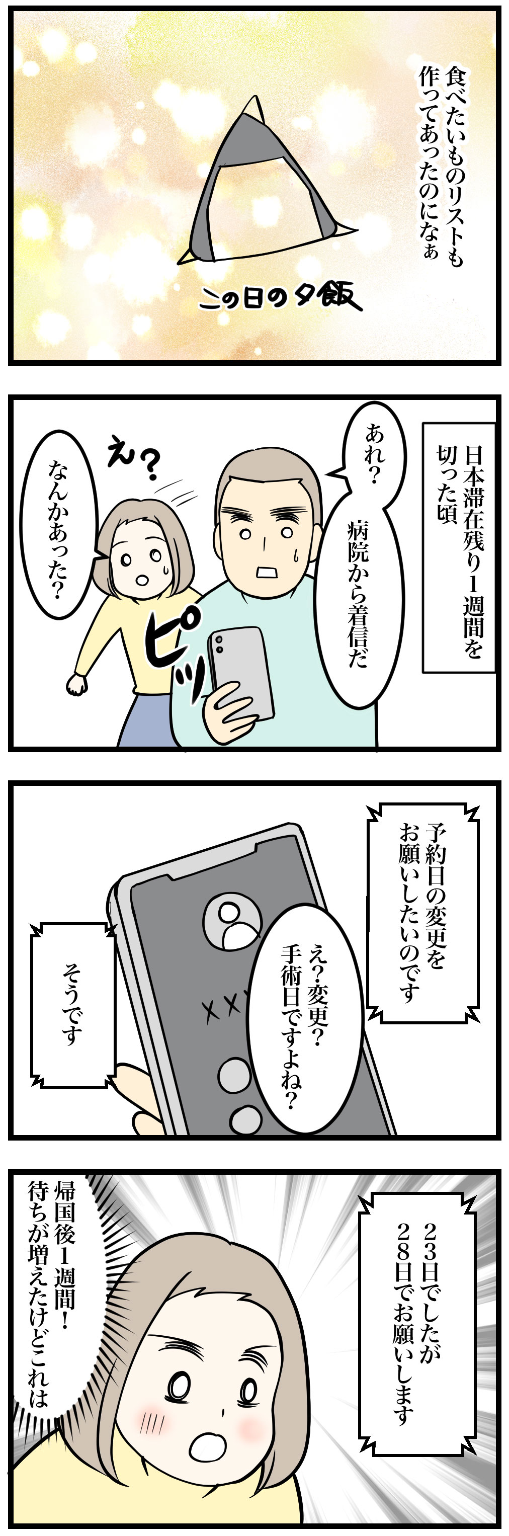 日本から帰国3日後の手術予定が1週間ほど伸びた。