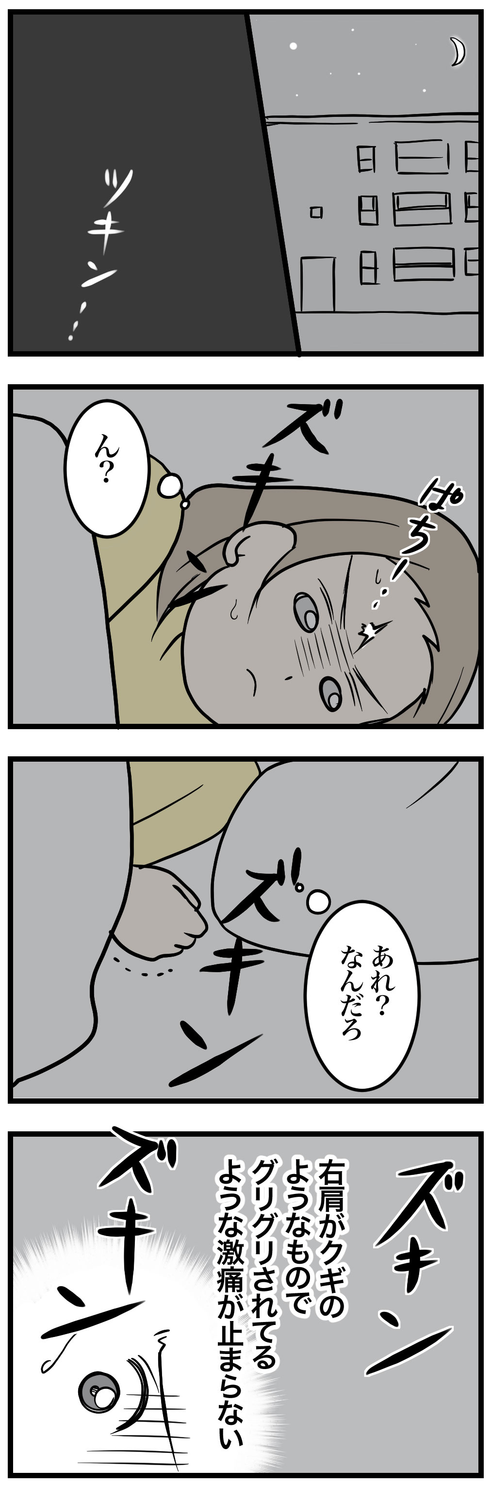 夜中に痛みで目が覚めたのは「右肩」だった。