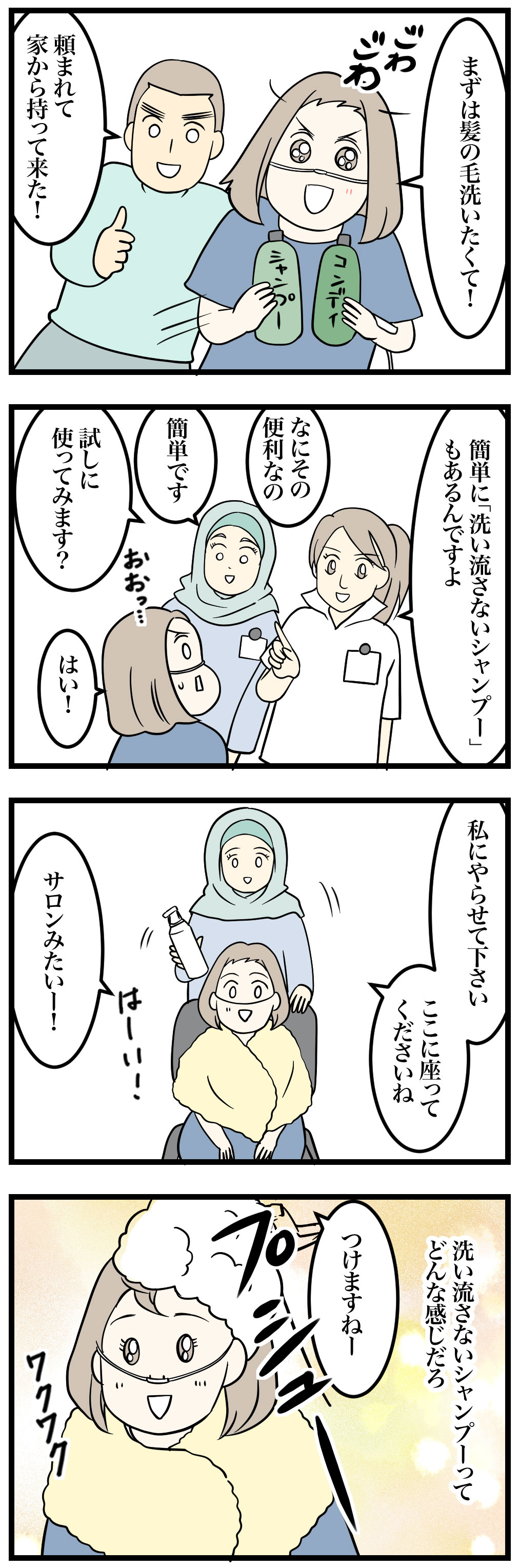 洗い流さないから椅子やベッドの上でもできる