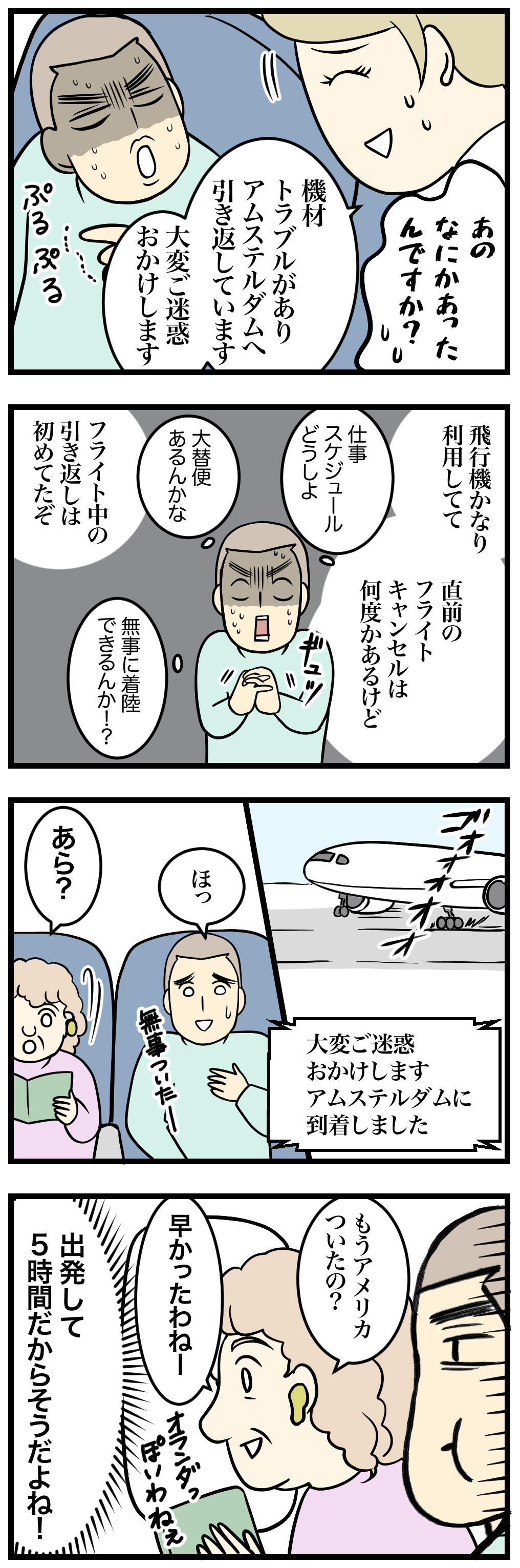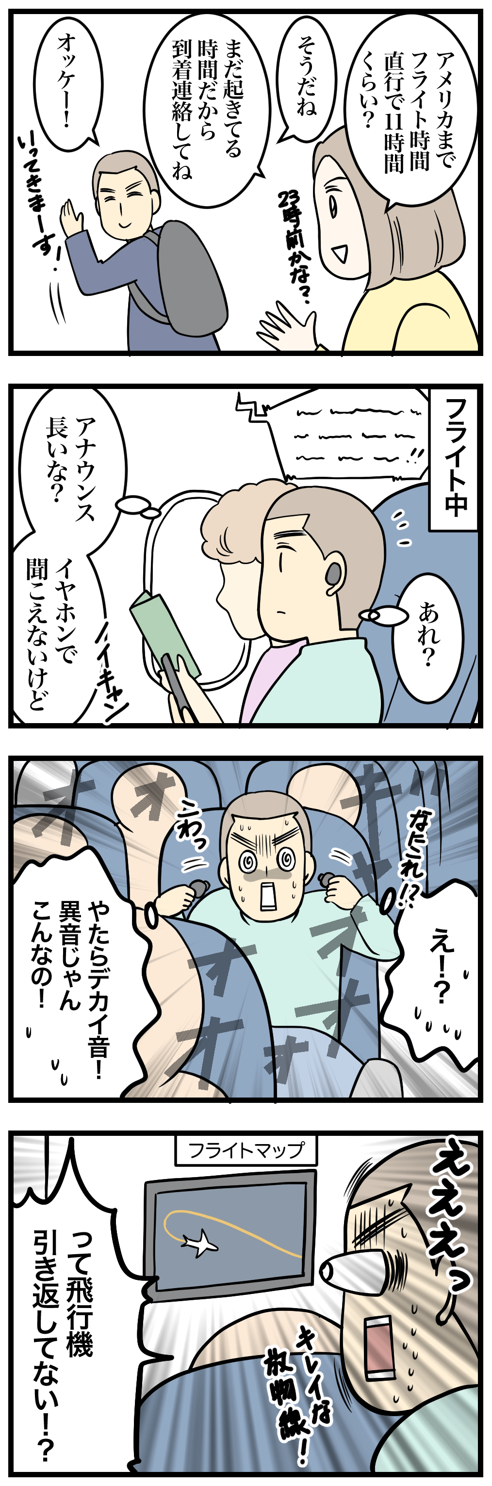 【長距離フライトで突然の引き返しと隣の人の反応】
