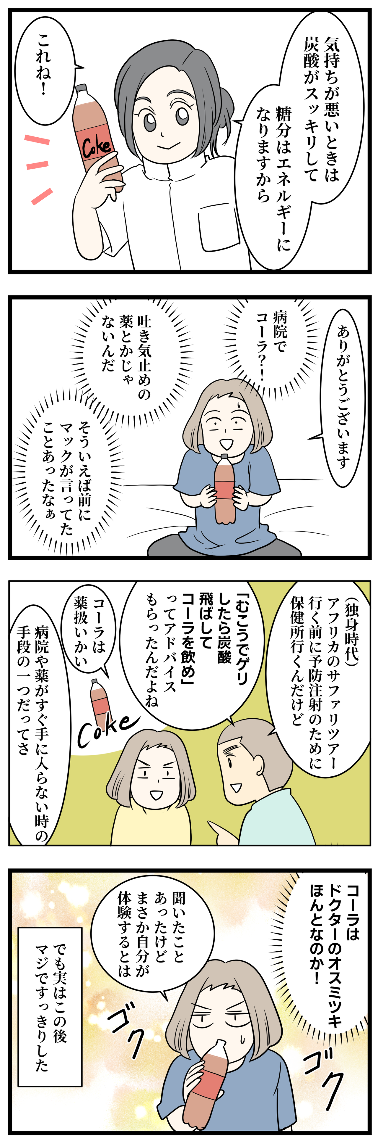 今回の私は「吐き気」だったので炭酸は抜かずに飲むように勧められました。