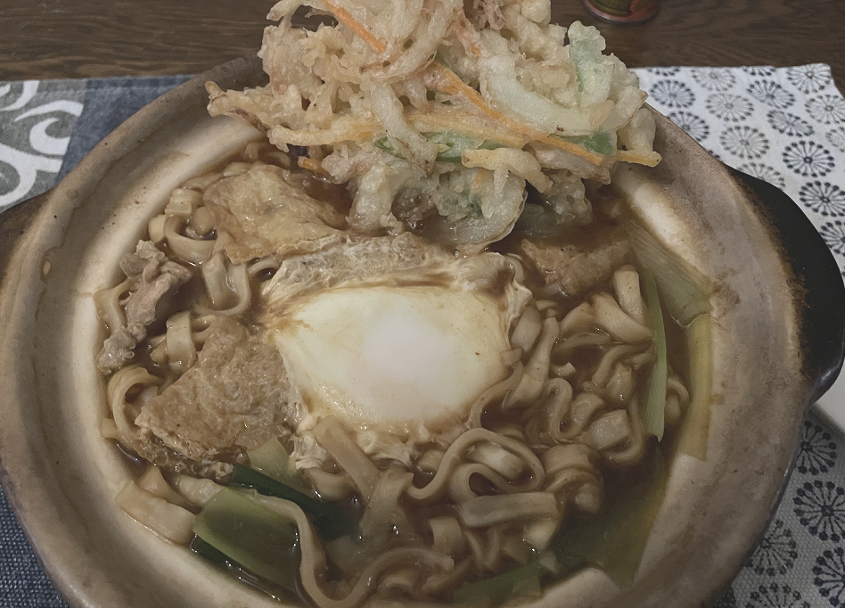 おうちで食べる土鍋のみそ煮込みうどん、最高です!