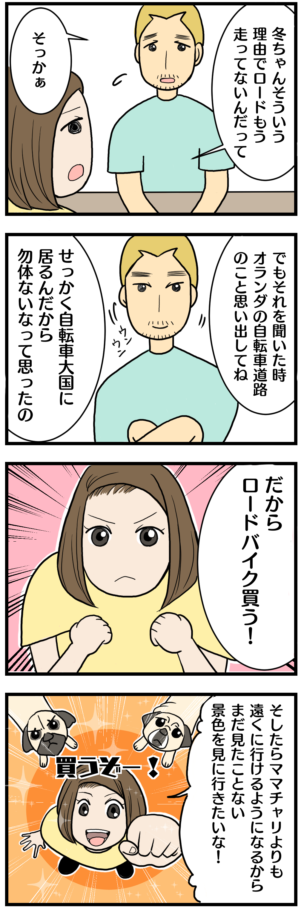 高額だし、続くかわからないし、盗まれるかもしれないし。いろいろ理由があって購入を渋ってたけど、冬ちゃんの道路事情の話を聞いてココロは決まった。