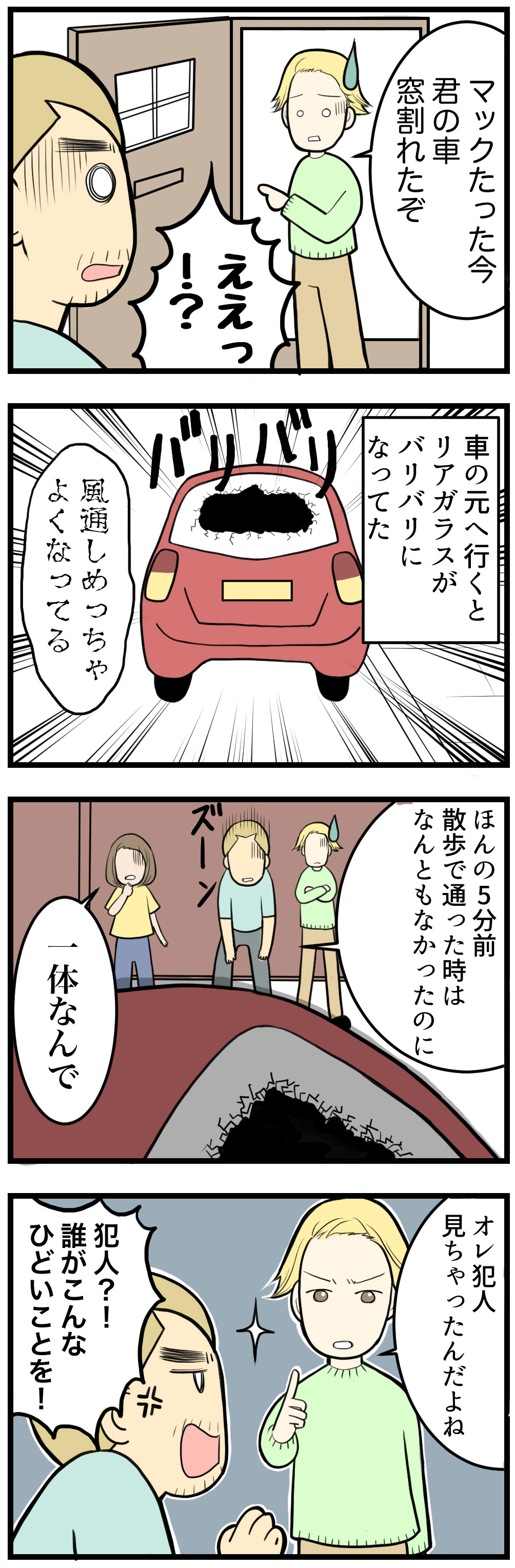 今日は【車のリアガラスが割られた】お話です。