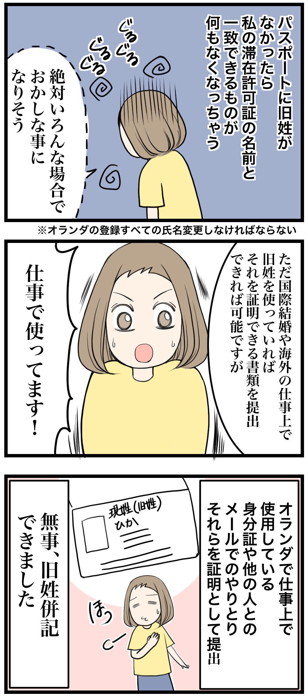 そしてオランダでの登録は現姓になってたし、仕事も現姓だった。