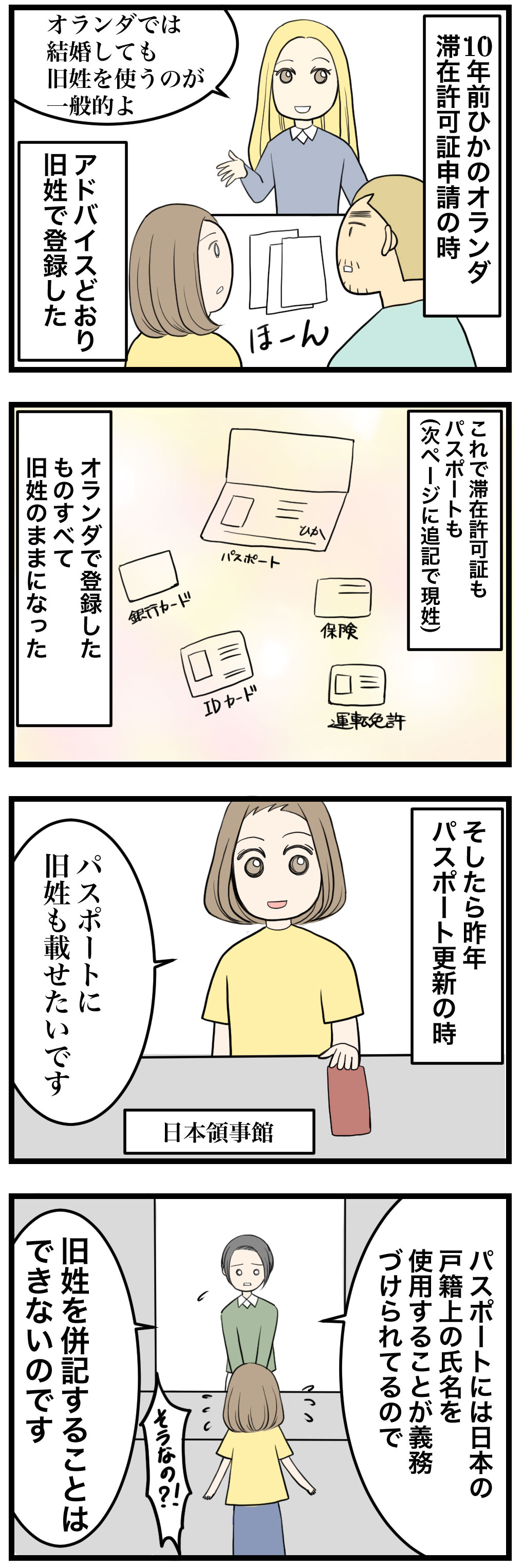 またのちのち、日本人女性(国際結婚)にも旧姓使用のことは言われました。