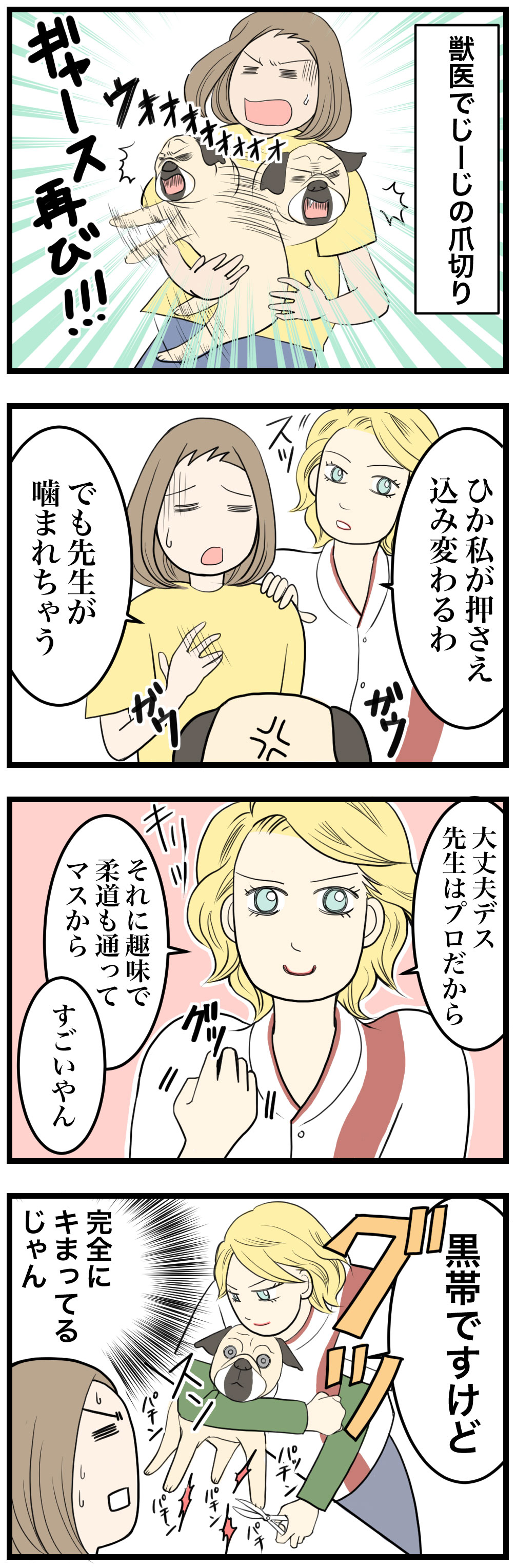 注射には無反応なじーじだけど、爪切りには全力で反抗するよ。