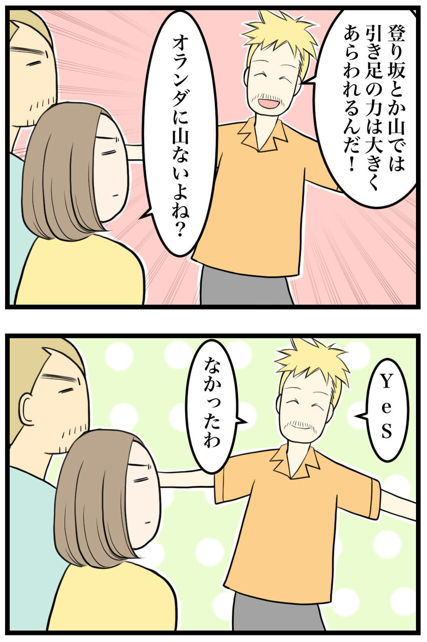 オランダは山がなく平地です。日本のレベルでいうと「丘」レベルの「山」はあります。