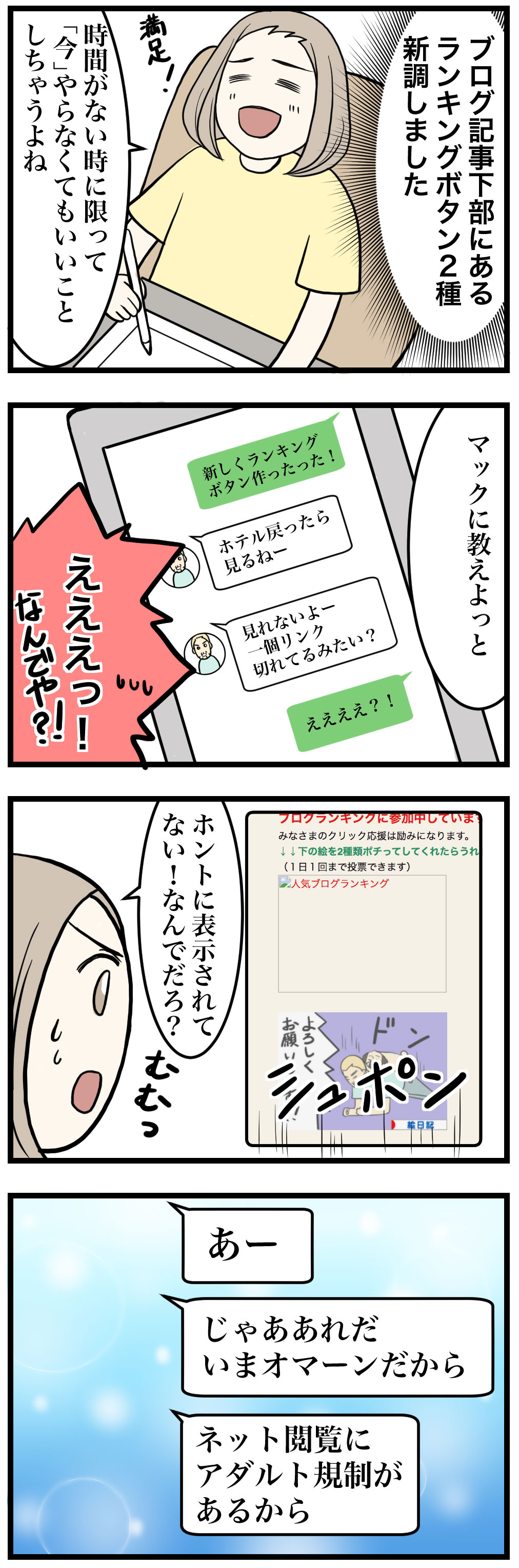 ランキングボタンを2つ新調したので、出張中のマックに教えました。