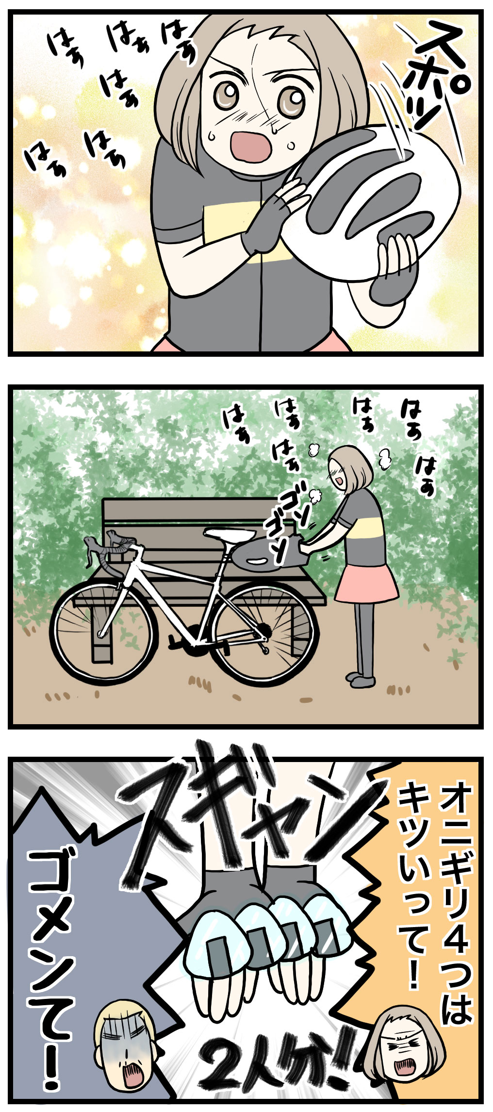 この後、マックのロードバイクにはおにぎり用の小さいサドルバッグが取り付けられましたとさ。