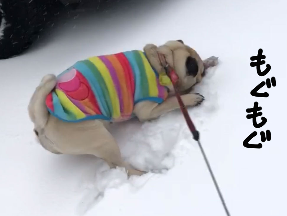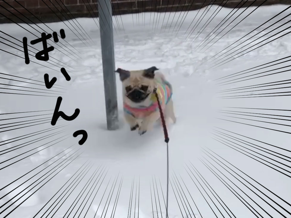 一人で走り回って、かと思いきや顔を雪につっこんでみたり。
