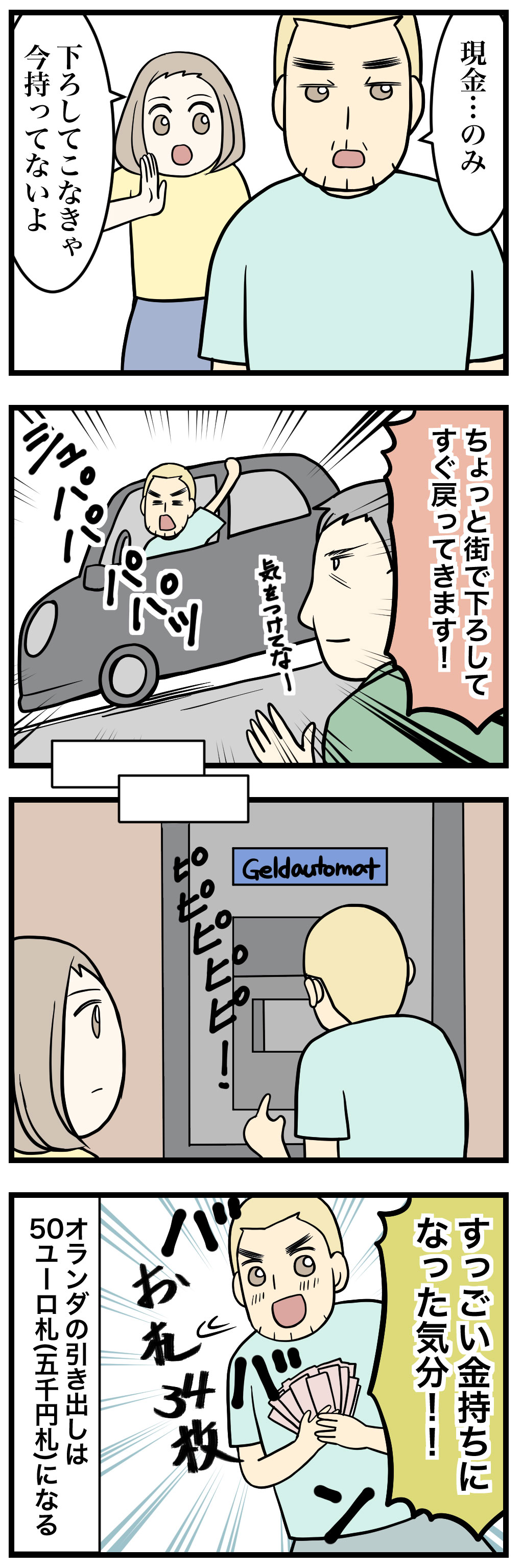 オランダのATMは一日の最大引き出し金額が決まってるので、