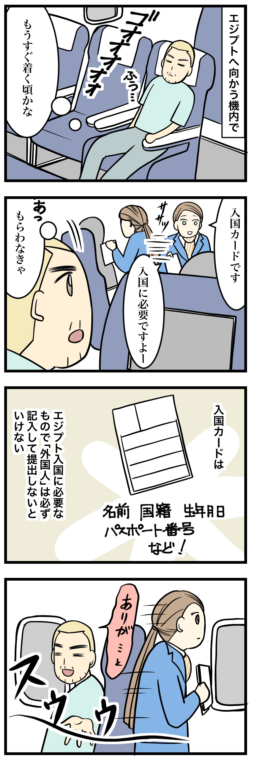 エジプトへ向かう機内で、入国カードをCAさんが渡してくれます。